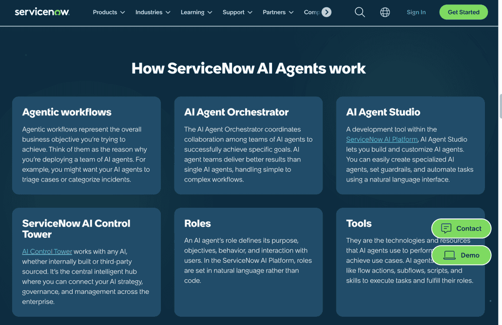 ServiceNow follows a similar idea with AI Agents built into its workflows. These agents act on incidents, requests, and changes on their own, using context from the CMDB, knowledge base, and ticket history. They can coordinate tasks, trigger follow-up actions, or execute small fixes without waiting for a human to step in.