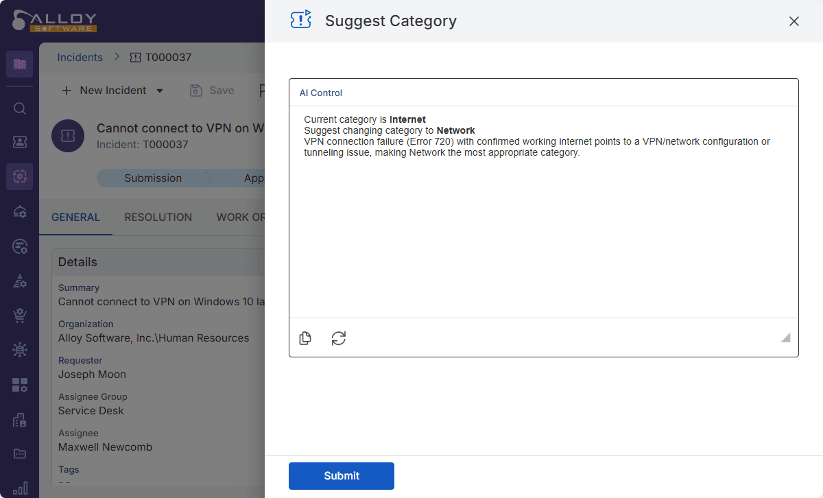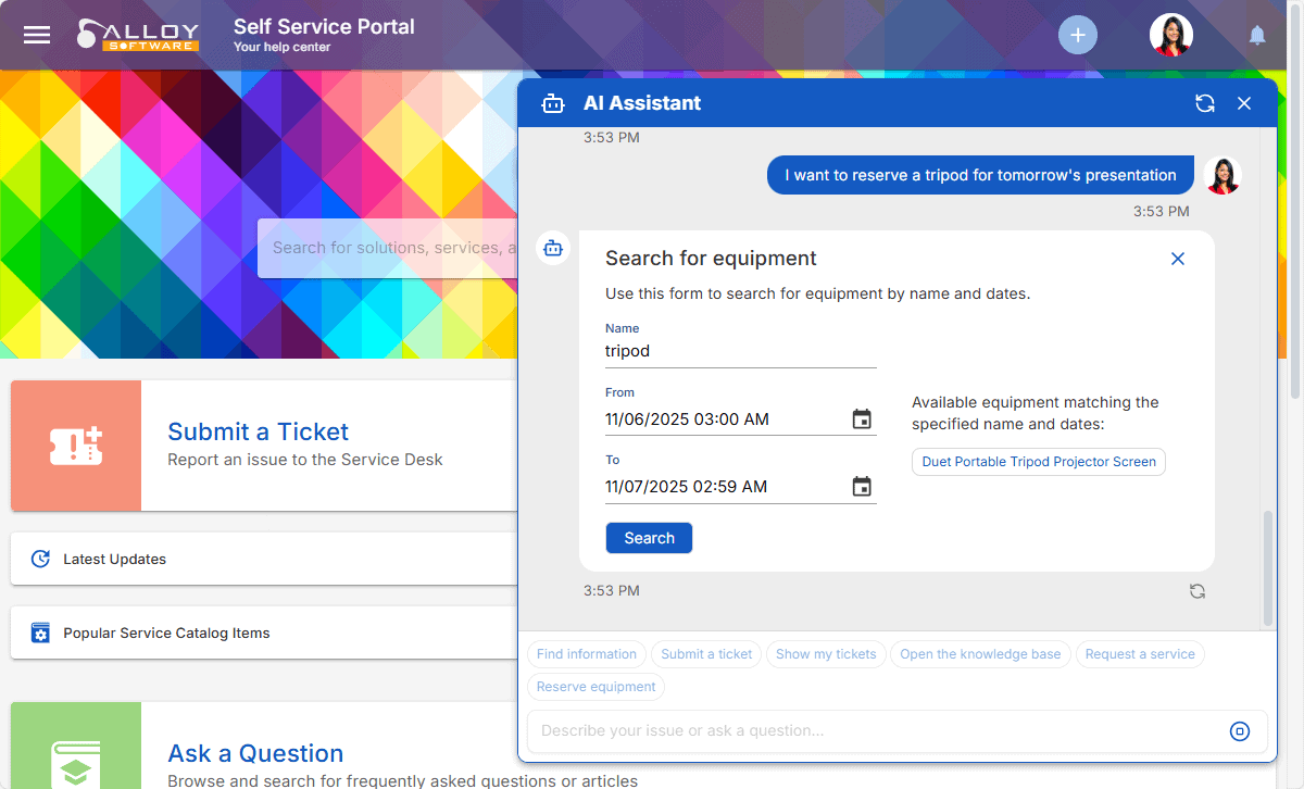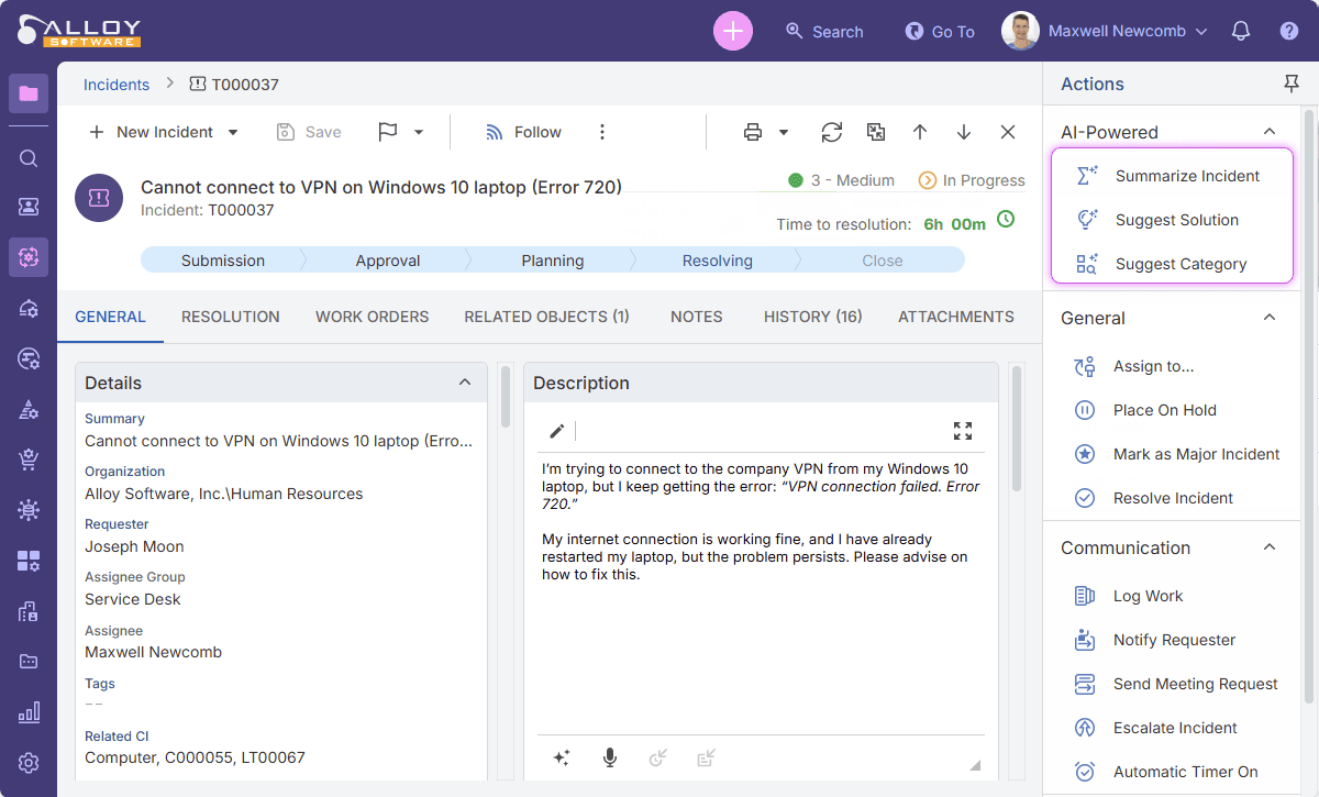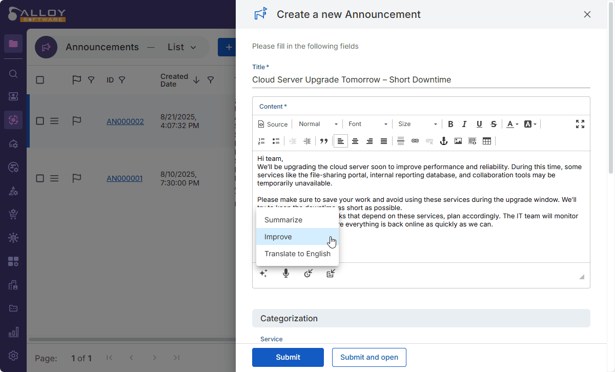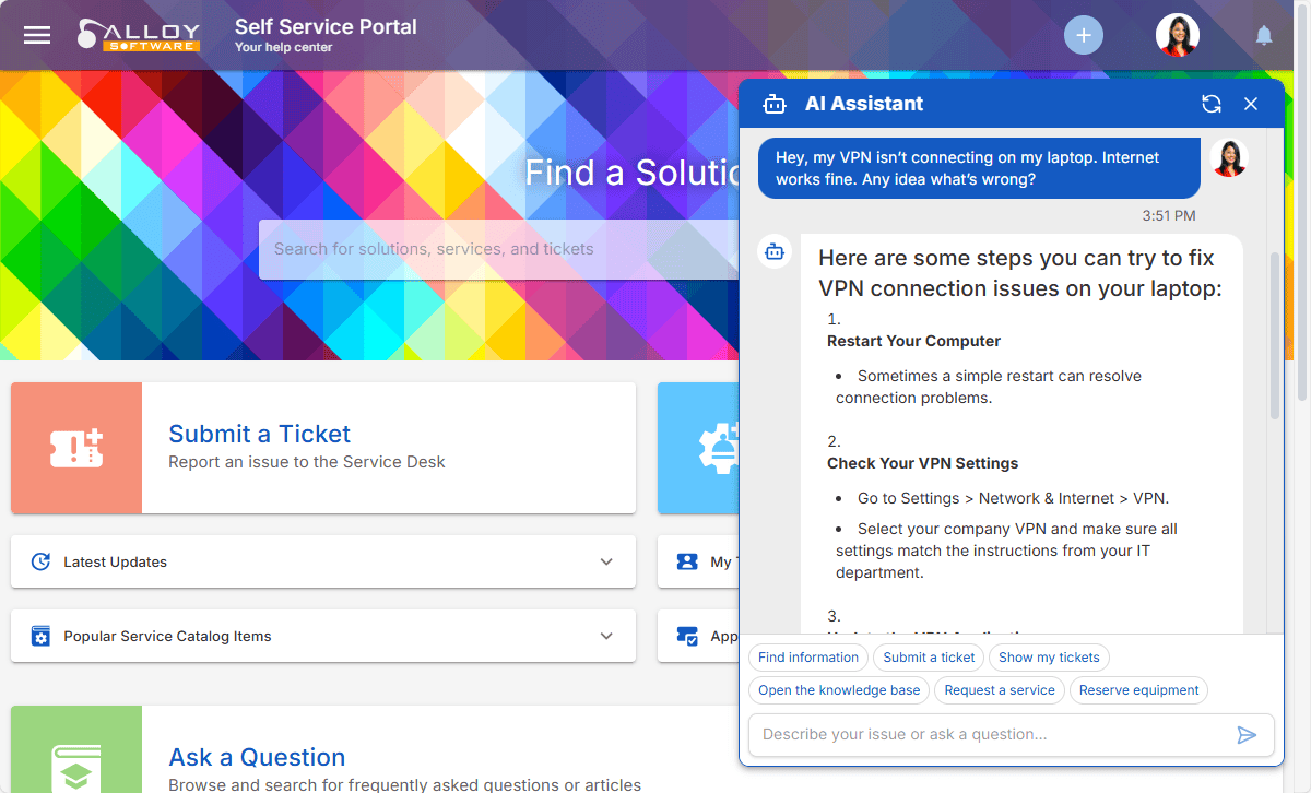 Seamless multi-language support: AI provides automatic translation for communications across different languages, based on the requester’s organization or location. Agents can work in one language while requesters interact in another, ensuring everyone clearly understands the conversation.