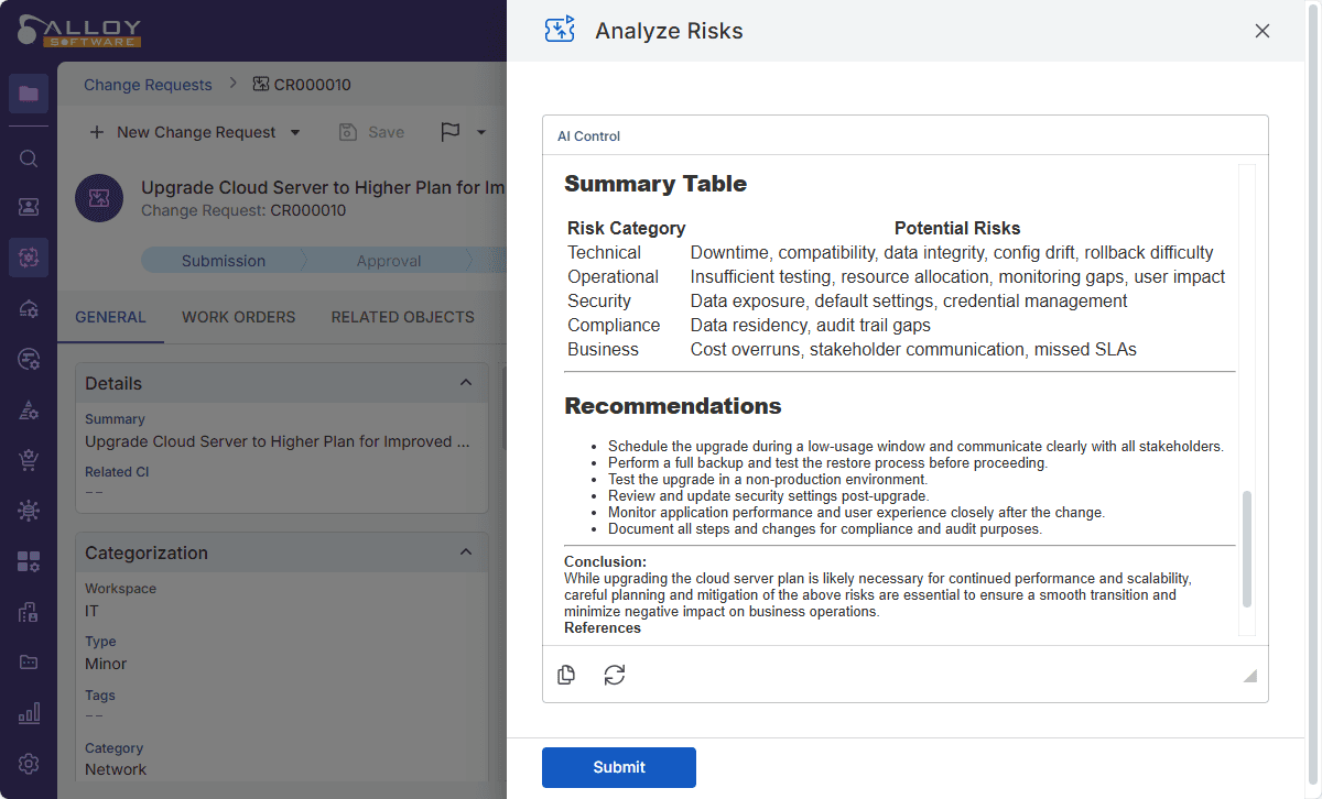Asset lifecycle analysis: AI reviews asset usage, maintenance records, and software updates, and provides recommendations for replacements, upgrades, or redeployment. This helps IT managers optimize resources and reduce downtime.