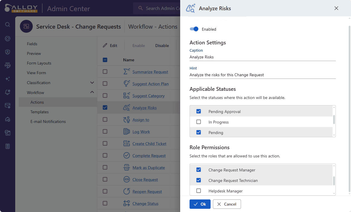 To enable flexible AI integration, we designed a dedicated workflow element, AI Control, which allows the creation and deployment of customizable AI-powered steps across any object or process.