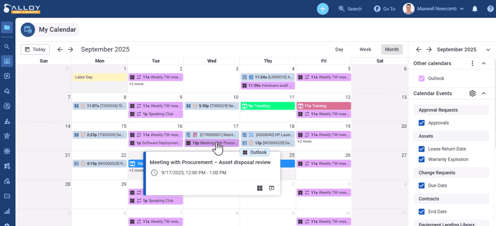 Your calendar should help you work smarter, not harder. With interactive entries, live sync with Outlook, and color-coded clarity, My Calendar in Alloy Navigator brings your responsibilities and availability into one manageable, visual place. Whether you’re planning the week ahead or reacting to the unexpected, it’s the single source of truth for everything on your plate.