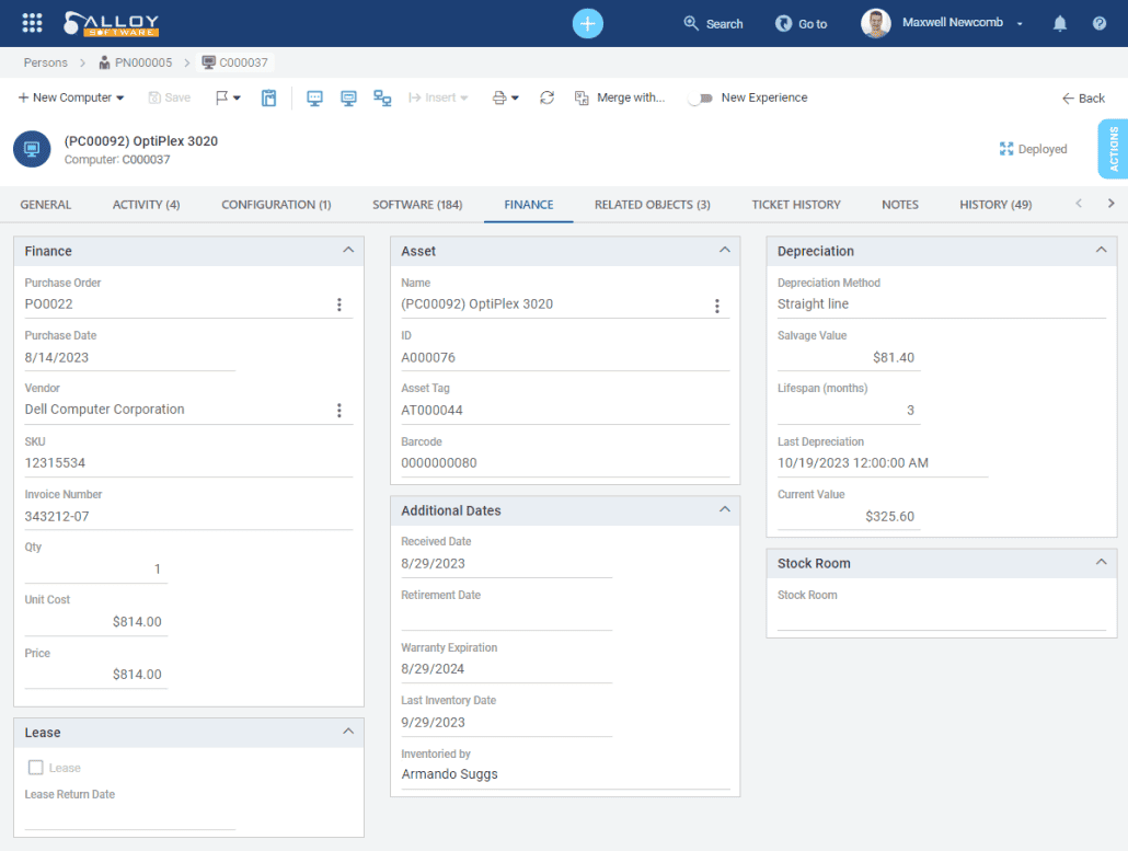 With Alloy Software’s IT asset management solution, you can quickly compare the purchase price and the current value of any organizational asset—see the screenshot below. Connect with our sales team to learn more.