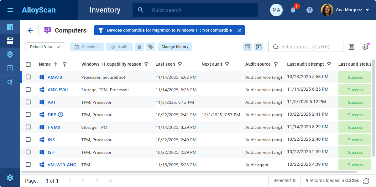 Alloy Software solutions make the migration process smoother by giving IT teams a clear picture of all devices in the organization. You can instantly see which Windows 10 PCs are ready for Windows 11 and which require upgrades, making planning much easier.